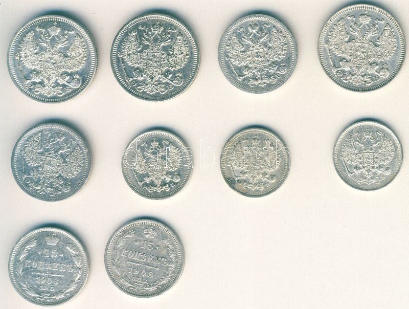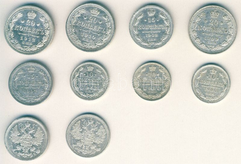 Cári Oroszország 1902-12. 10k Ag (3x), 15k Ag (4x), 20k Ag (3x) mind klf évszámmal T:2/3,3 Összesen 10db!