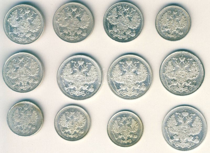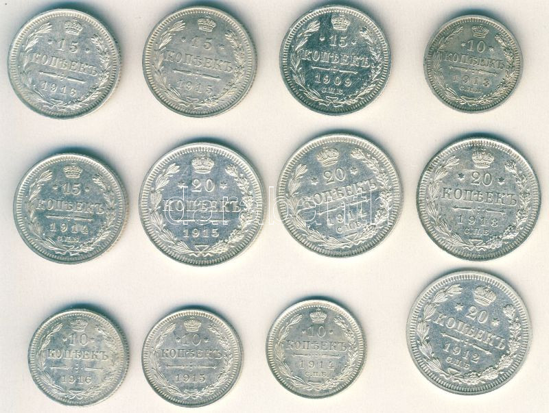 Cári Oroszország 1909-16. 10k Ag (4x), 15k Ag (4x), 20k Ag (4x) mind klf évszámmal T:2/3,3 Összesen 12db!