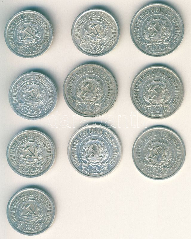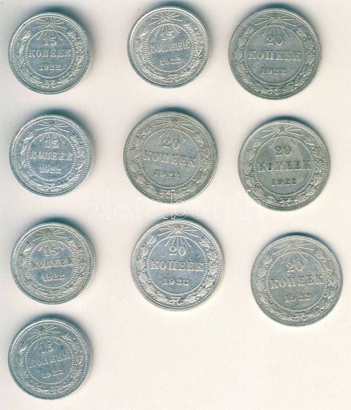 Oroszország/Szocialista Szövetségi Szovjet Köztársaság 1922. 15k Ag (5x), 20k Ag (5x) T:2-,2/3 Összesen 10db Ag!