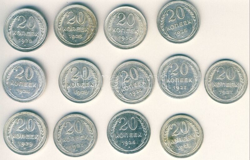 Szovjetunió 1924-30. 20k Ag (13x) T:2-,2/3,3+