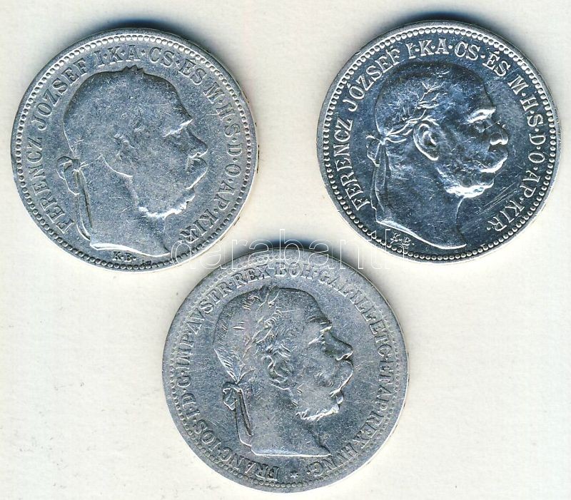 1893+1915. 1K Ag (2x) klf + Ausztria 1894. 1K Ag T:3