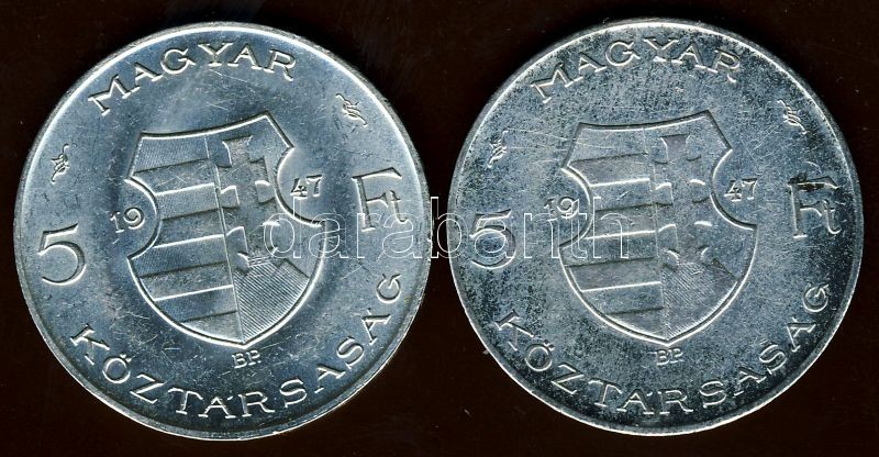 1947. 5Ft Ag "Kossuth" (2x) T:2/3,3