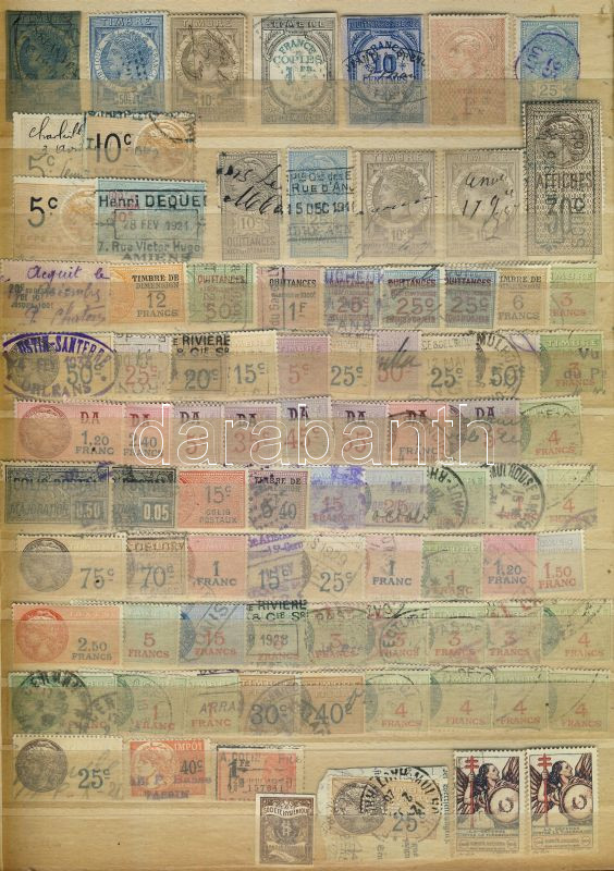 Francia okmánybélyegek, csomagbélyegek, egyéb parafilatélia közte ritk...