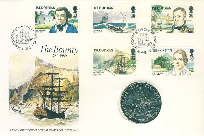 Man-sziget 1986. 1C "Bounty hajó" érmés, bélyeges borítékon T:1