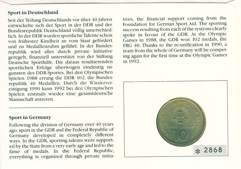 NDK 1988. 10M "Sport" érmés, bélyeges borítékon T:2