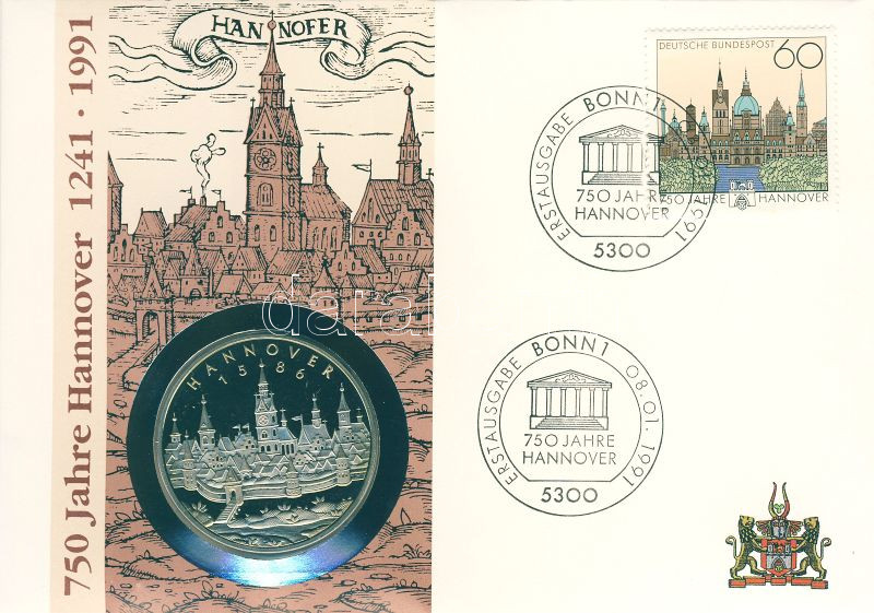 NSZK 1991. "750 éves Hannover" ffém emlékérem érmés, bélyeges borítéko...