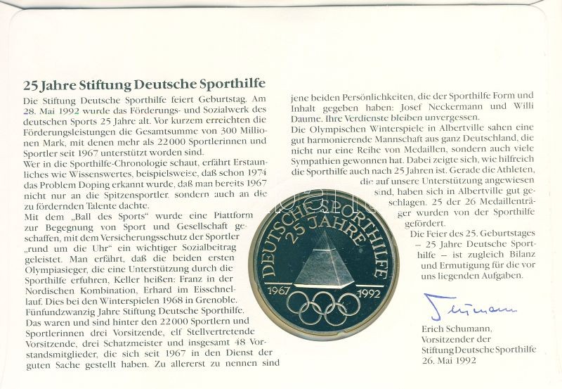 NSZK 1992. "25 éves a Német Sportsegély-Josef Neckermann" ffém emlékér...