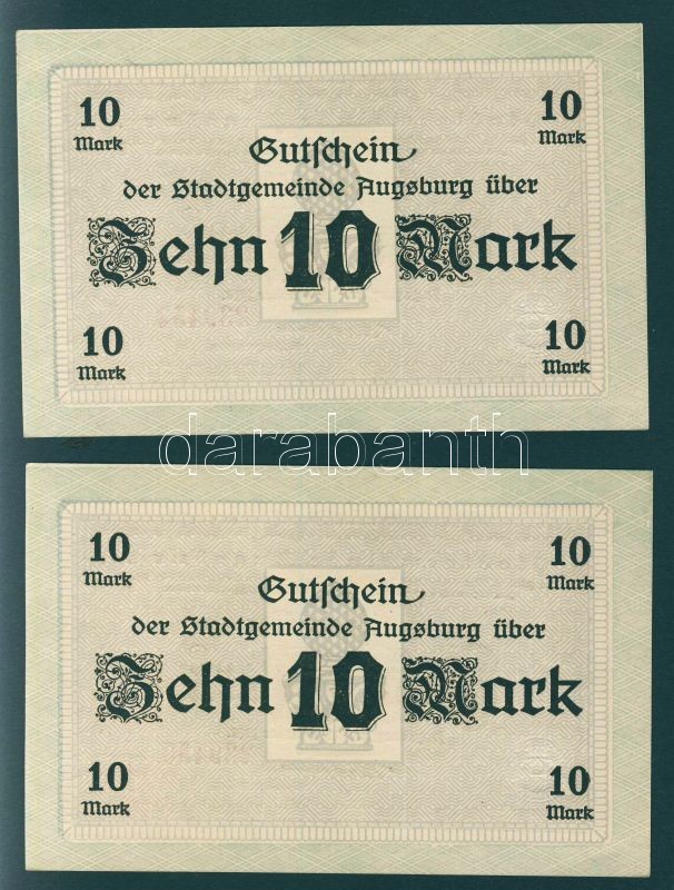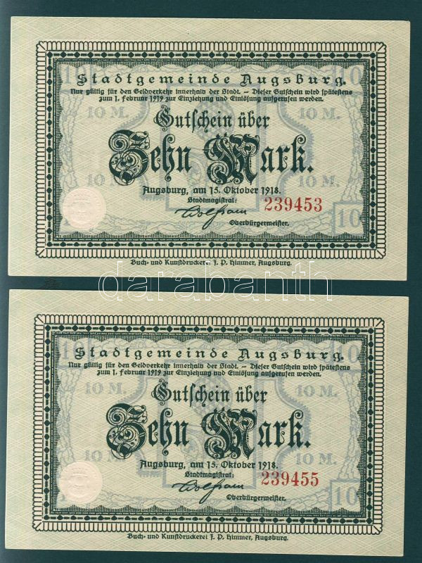 Német Birodalom/Császárság/Augsburg 1918.10.15. 10M (2x) egyugrású sorszámmal T:I