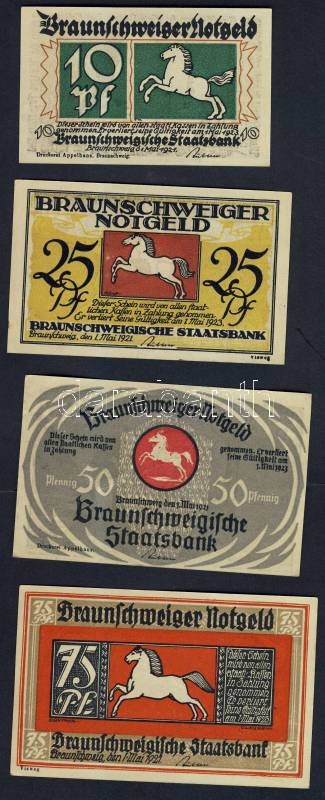 Német Birodalom/Weimari Köztársaság/ Braunschweig 1921. 10Pf + 25Pf + 50Pf + 75Pf 4klf db,teljes sor T:I