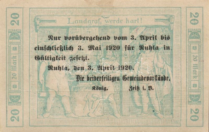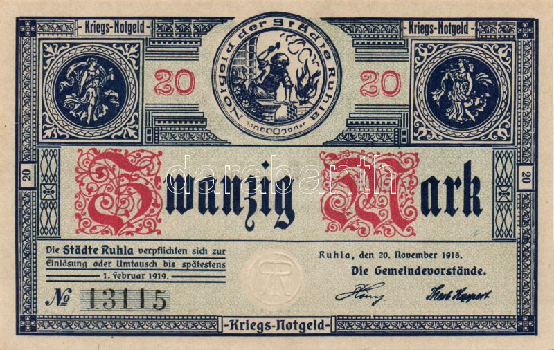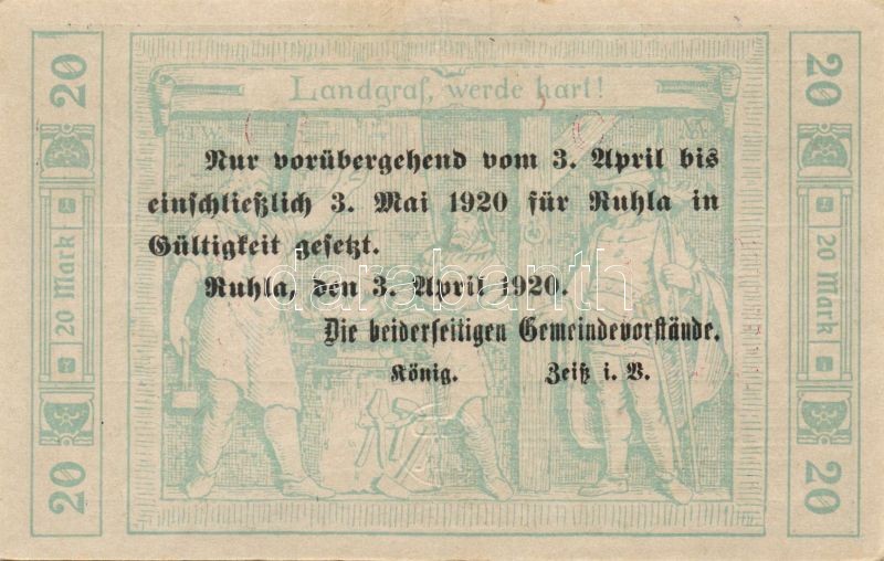 Német Birodalom/Weimari Köztársaság/Ruhla 1918.11.20. 20M (2x) T:II