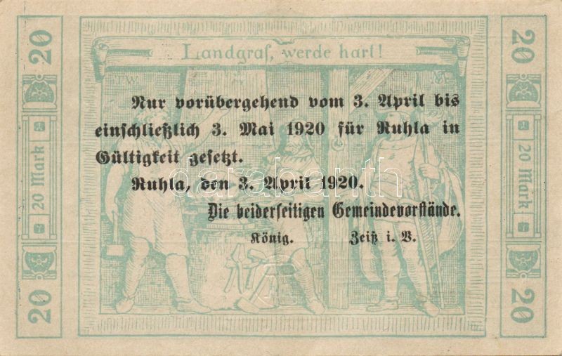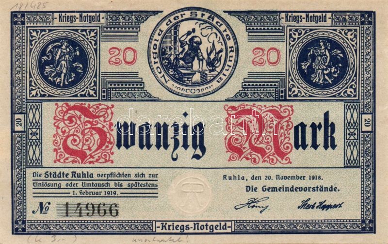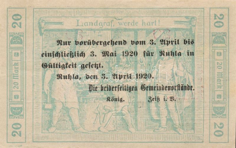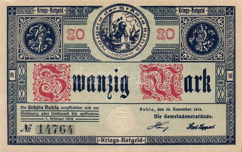 Német Birodalom/Weimari Köztársaság/Ruhla 1918.11.20. 20M (2x) T:II