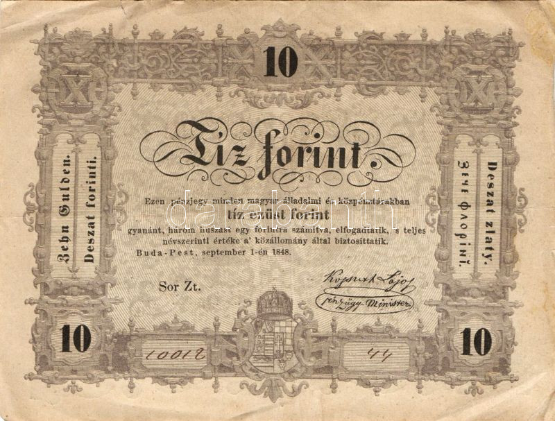 1848. 10Ft "Kossuth-bankó" T:III+