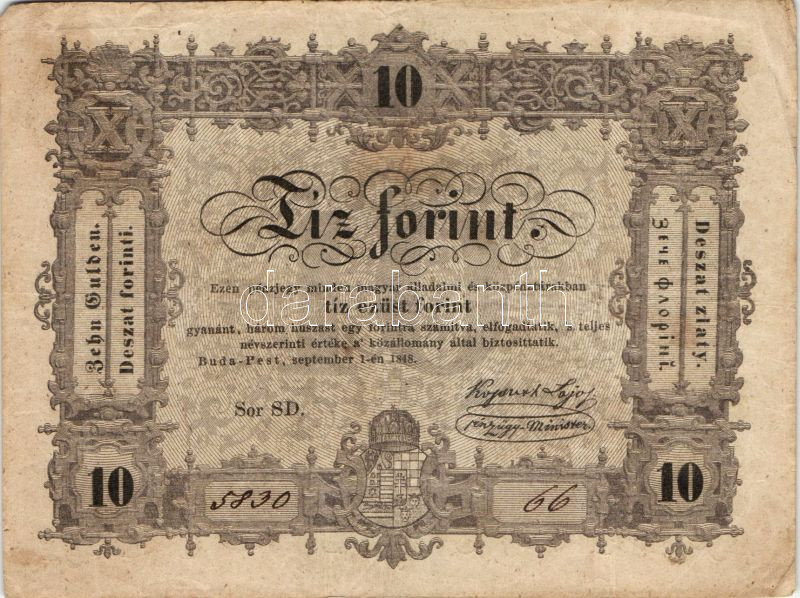 1848. 10Ft "Kossuth-bankó" T:III+