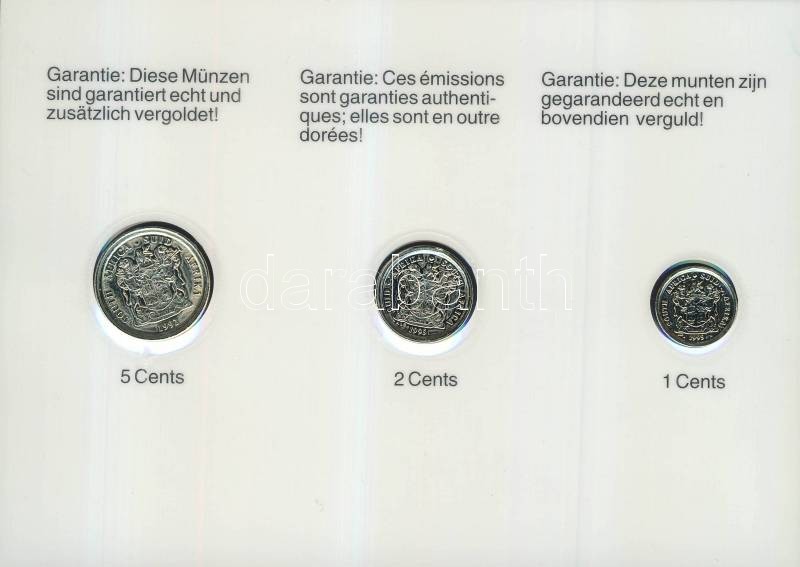 Dél-Afrika 1992-95. 1c, 2c, 5c mindegyik aranyozva T:1 Kereskedői szettben!