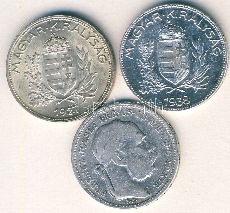 1893. 1K Ag + 1927-38. 1P Ag (2x) klf évszámmal T:2,3