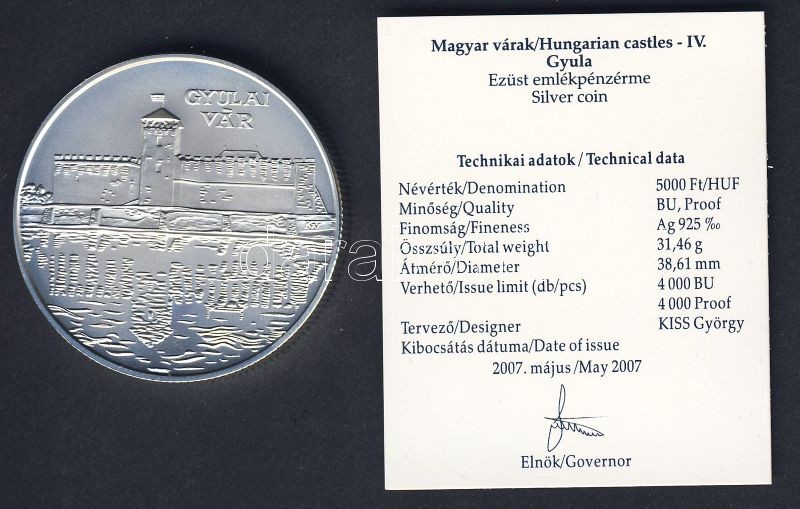 https://www.darabanth.com/en/103-Online-auction/103.0/Numismatics/~40016/2007-5000Ft-Ag-Gyulai-Var-TBU-Csak-4000db-Diszdobozban-tanusitvannyal~II250726
