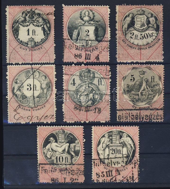 https://www.darabanth.com/en/103-Online-auction/103.0/Other-collectibles/~100133/1881-Okmanybelyeg-sor-8-db-klf-Forintos-erteke-stecklapon~II247842