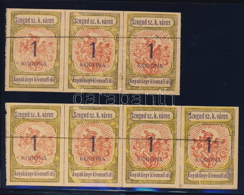 https://www.darabanth.com/en/103-Online-auction/103.0/Other-collectibles/~100133/1918-Szeged-Anyakonyvi-kivonati-dij-illetek-1K-3-as-plus-4-es-csik~II247741