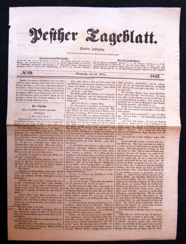 https://www.darabanth.com/en/103-Online-auction/103.0/Other-collectibles/~100142/1843-Pesther-Tagesblatt-c-ujsag-kivalo-allapotban~II249495