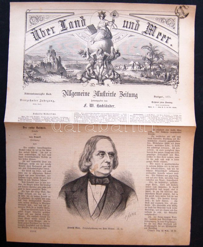 1871 Über land und Meer újság címlapja 32 kr újságszignettával és szép...