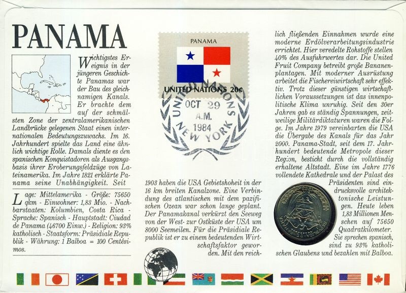 Panama 1983. 1/4B érmés, bélyeges borítékon T:1