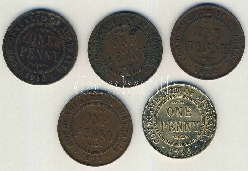Ausztrália 1916-1936. 1P (5x) mind klf évszámmal! T:2/3,3