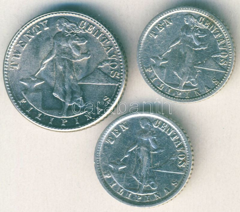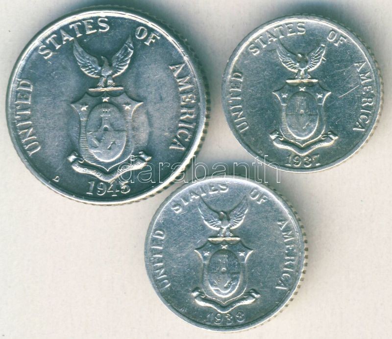 Fülöp-szigetek/USA adminisztráció/társállam 1937,1938. 10c Ag 2klf + 1945. 20c Ag T:2,2/3+