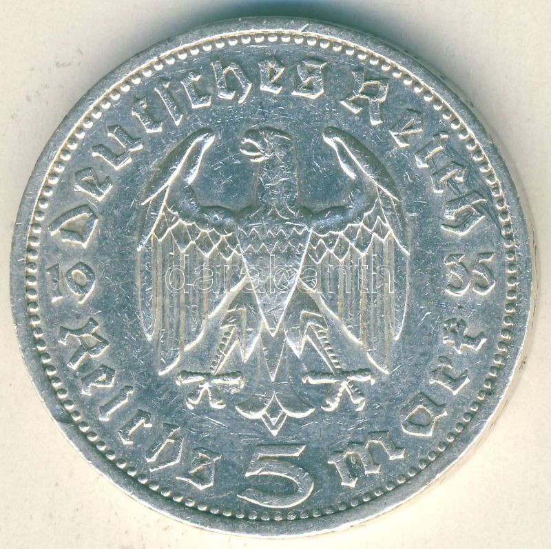https://www.darabanth.com/en/105-Online-auction/105.0/Numismatics/~500015/Nemet-3-Birodalom-1935E-5M-Ag-Hindenburg-T3-ph~II256439