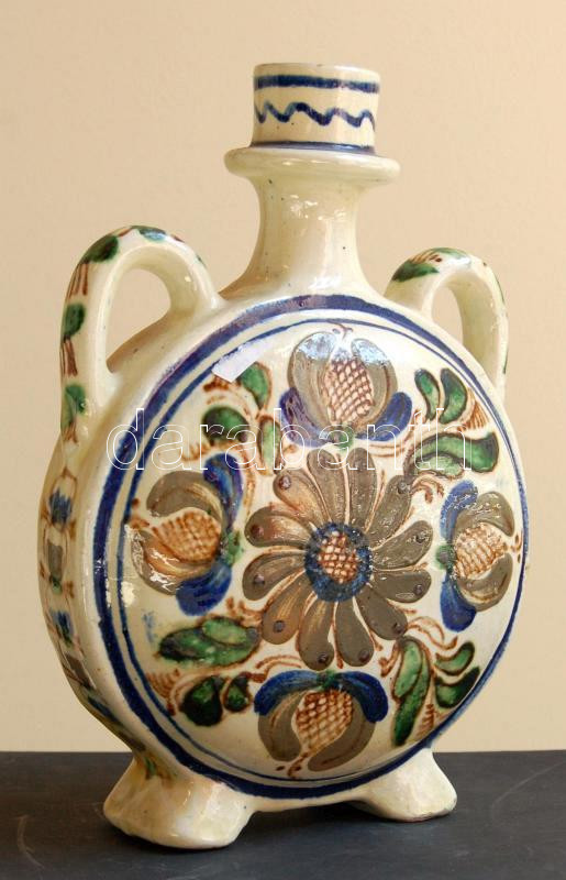Korondi mázas kulacs Kiss Sanyi kézműves szignójával, magassága 26cm
