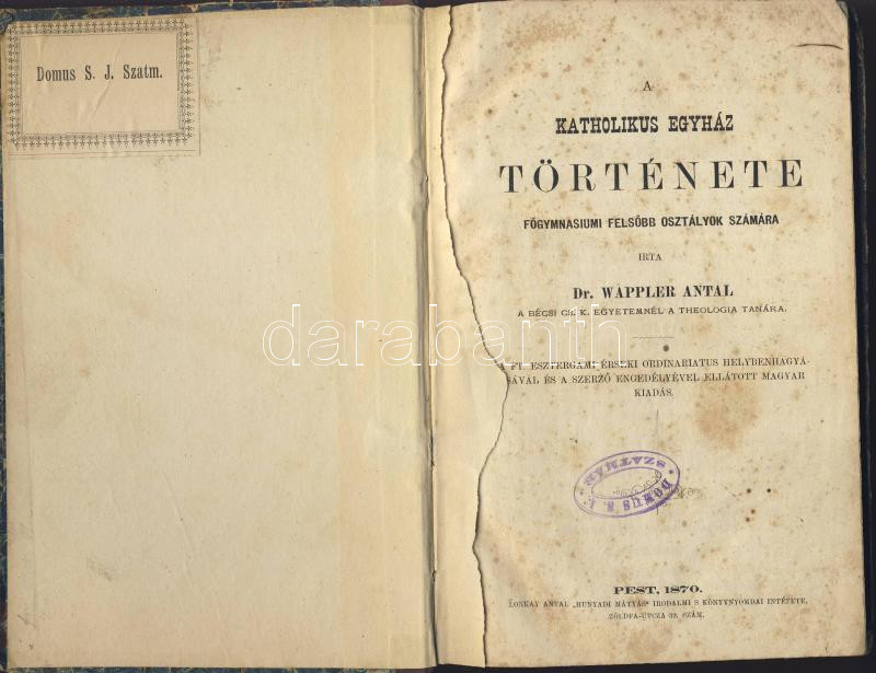 https://www.darabanth.com/en/107-Online-auction/107.0/Other-collectibles/~305/1870-Dr-Wappler-Antal-A-Katholikus-Egyhaz-tortenete-Pest-Lonkay-Antal-nyomdaja-kartonkote~II264448