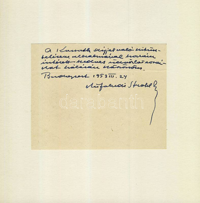 1953 Kisfaludi Strobl Zsigmond szobrászművész autográf sorai és aláírá...