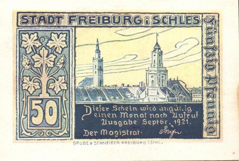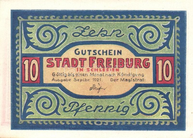 Német Birodalom/Weimari Köztársaság/Freiburg 1921. 10Pf + 25Pf (5x) + 50Pf (4x) 10 klf db, teljes sor T:I