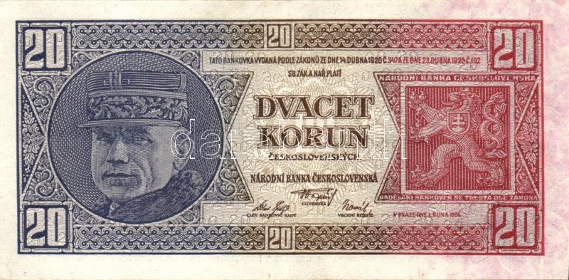 Csehszlovákia 1926. 20K(2x)egymásutáni sorszámokkal T:II