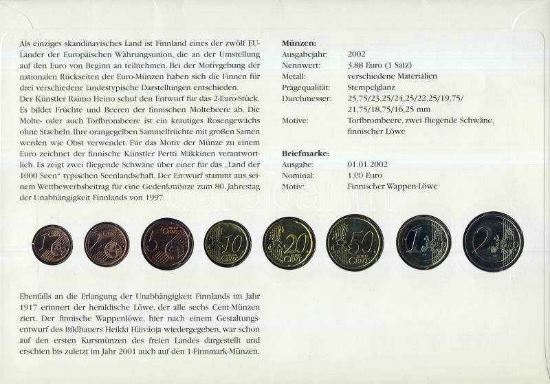 Finnország 1999-2002. Vegyes évszámú komplett Euro forgalmi pénz sor bélyeges érmés borítékon, elsőnapi bélyegzővel T:2 R! hátoldali ismertető tanúsítvánnyal