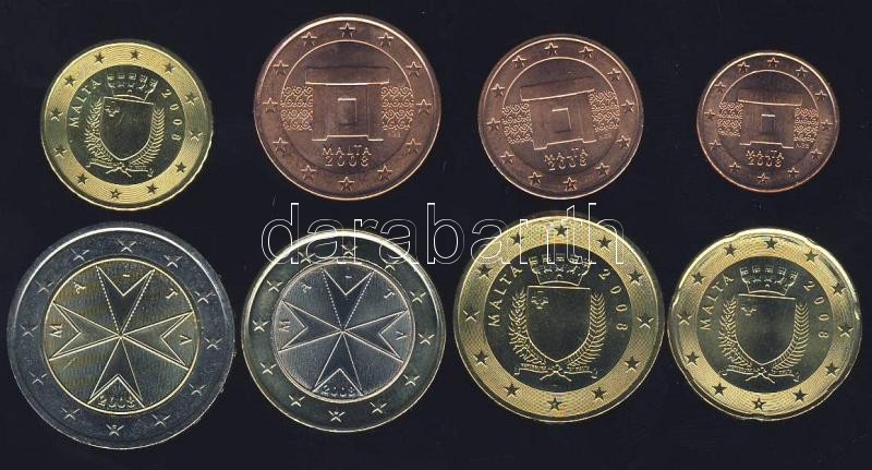 Málta 2008. 1c-2€ 8klf db, forgalmi sor T:1 Tanúsítvánnyal!