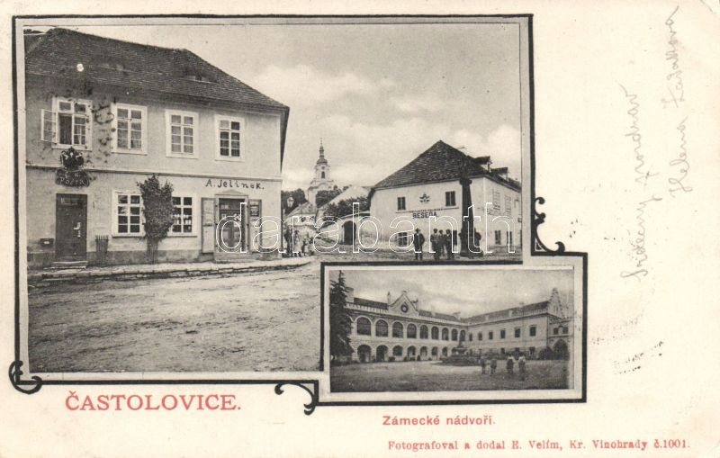 1899 Castolovice with the shop of A. Jelinek and the office of the Pea...
