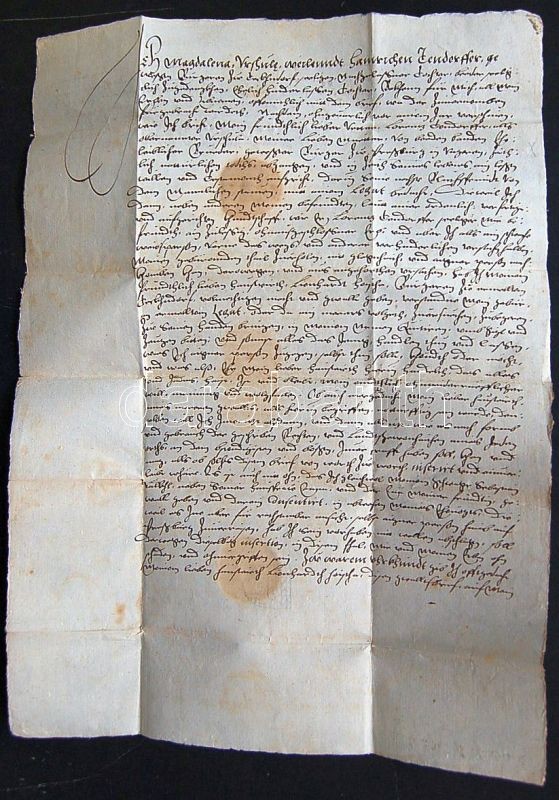 1502. június. 13.-án (Pozsonyban?) kelt kezírásos levél nemesi szárazpecséttel / Hand-written letter with dry-seal Pressburg? 32x50 cm