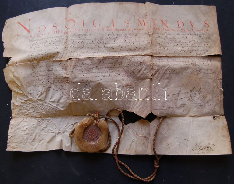 1607 december 3. Rákóczi Zsigmond erdélyi fejedelem adománylevele, Kra... https://www.darabanth.com/en/11-Major-auction/11.1/Hungarian-philately-and-postal-history/~2975/1607-december-3-Rakoczi-Zsigmond-erdelyi-fejedelem-adomanylevele-Kraszna-varosarol-sajat-k~II360774