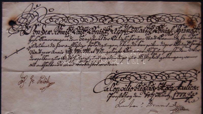 1777 Helytartótanácsi hivatalos levél Erdődy József kancellár és gr. B... https://www.darabanth.com/en/11-Major-auction/11.1/Hungarian-philately-and-postal-history/~2975/1777-Helytartotanacsi-hivatalos-level-Erdody-Jozsef-kancellar-es-gr-Brunswick-Jozsef-orsza~II360619