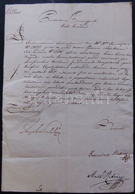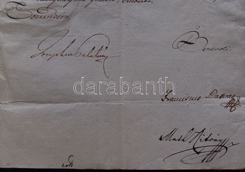 Description: 1804 Helytartótanácsi levél József nádor és Darvas Ferenc költő, tanácsos, Pest megyei követ saját kezű aláírásával / Ex offo letter of the Governing Council with autograph signature of Joseph Palladin and Franciscus Darvas poet, politican