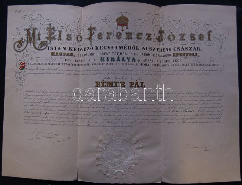 1869 Nagyalakú díszes utolsó kanonoki kinevezés Bémer Pál részére Fere... https://www.darabanth.com/en/11-Major-auction/11.1/Hungarian-philately-and-postal-history/~2975/1869-Nagyalaku-diszes-utolso-kanonoki-kinevezes-Bemer-Pal-reszere-Ferenc-Jozsef-es-Baro-~II360949
