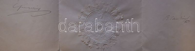 Description: 1869 Nagyalakú díszes utolsó kanonoki kinevezés Bémer Pál részére Ferenc József és Báró Eötvös József saját kezű aláírásával és Junák István prépost-kanonok ellenjegyzésével / Preberendal benefaction-letter with autograph Signature of Emperor Franz Joseph and Joseph Eotvos countersigned by the preberend of Oradea 60x40 cm