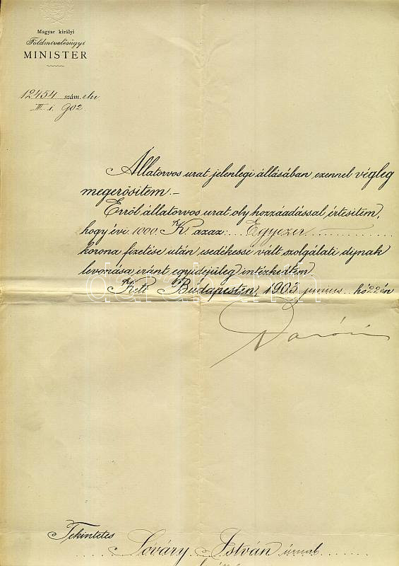 1903 Darányi Ignác volt földművelési miniszter aláírt okirata