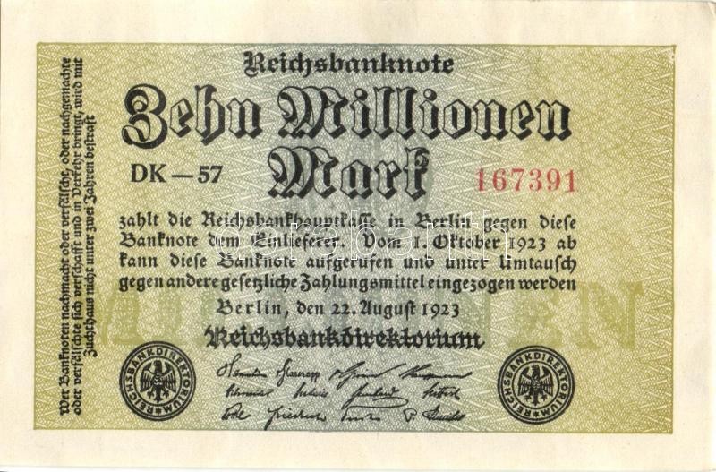 Német Birodalom / Weimari Köztársaság 1923. 10.000.000M (4x) egymás utáni ill. kis ugrású sorszámokkal T:I-
