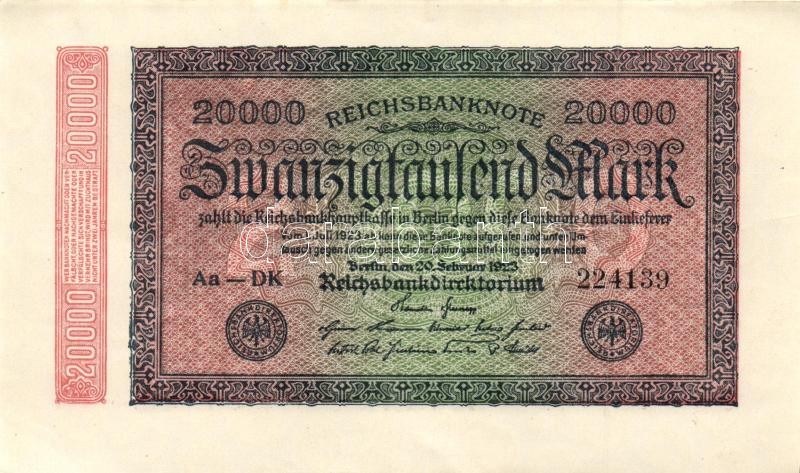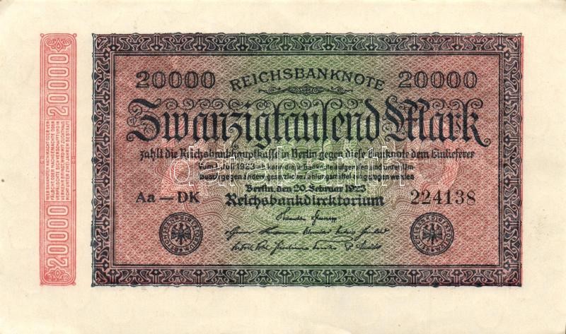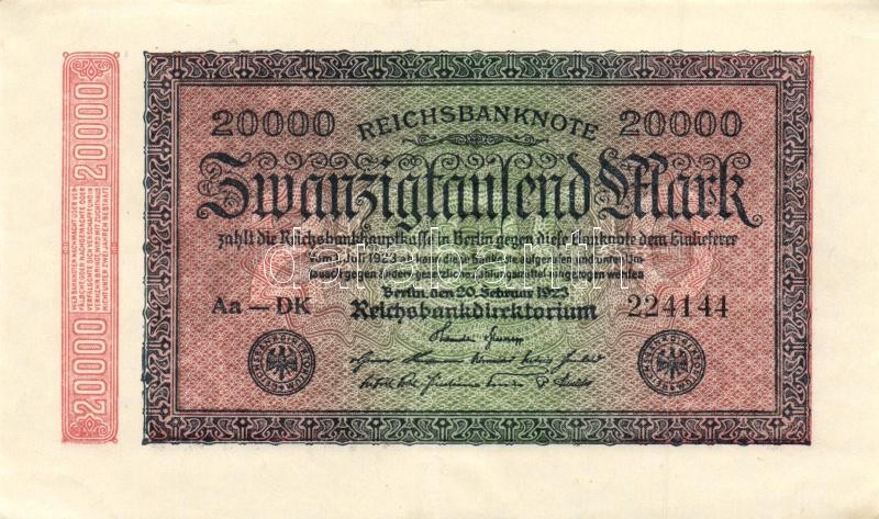 Német Birodalom / Weimari Köztársaság 1923. 20.000M (3x) egymás utáni ill. kis ugrású sorszámokkal T:I,I-