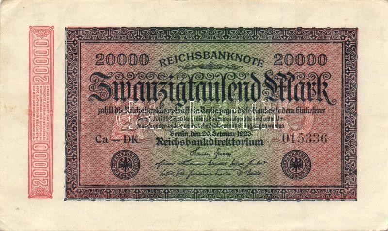 Német Birodalom / Weimari Köztársaság 1923. 20.000M (4x) közte egymás ...
