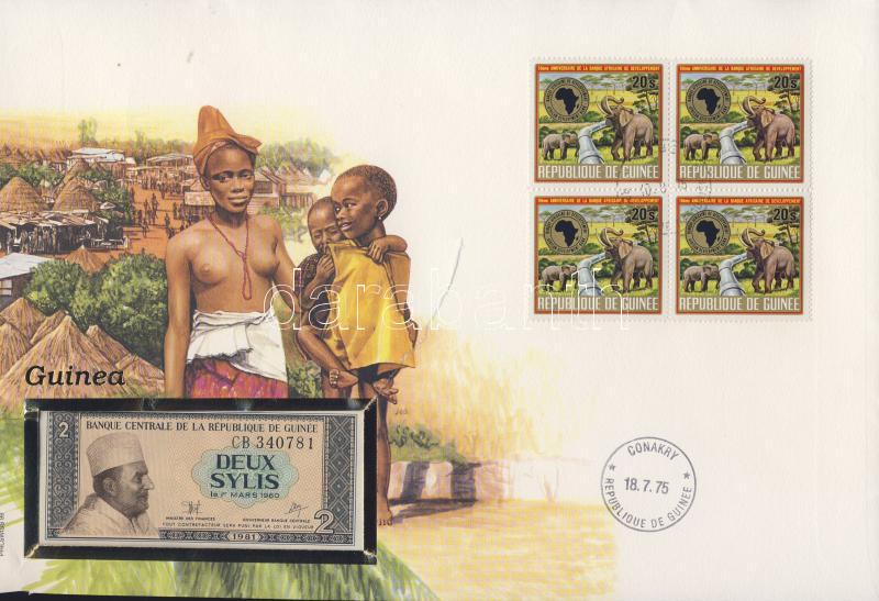 Guinea 1981. 2S dekoratív, nagyalakú bankjegyes, bélyeges borítékon, boríték sérült T:I