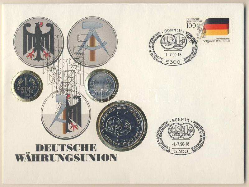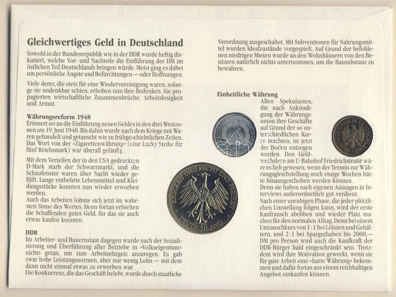 NSZK 1990. 1M + NDK 1982. 1M + Németország 1990. "Pénzügyi reform" Ffm emlékérem érmés borítékon alkalmi bélyegzős bélyeggel, hátoldali ismertetővel T:1,BU