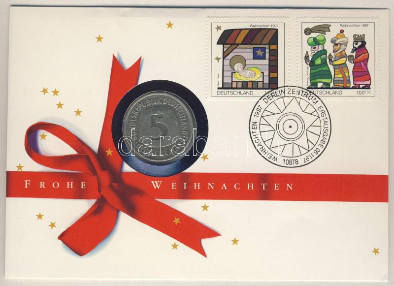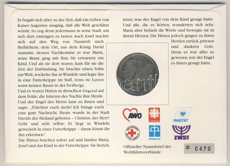 Németország 1990. 5M érmés borítékon 2 db bélyeggel, elsőnapi bélyegzővel, hátoldali ismertetővel T:3