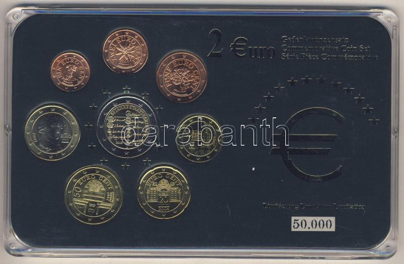 Ausztria 2002-2005. 1c-2€ 8klf db, benne 2€ alkalmi veret "50 éve írták alá az Államszerződést" kereskedői szettben T:1 Limitált példányszám!